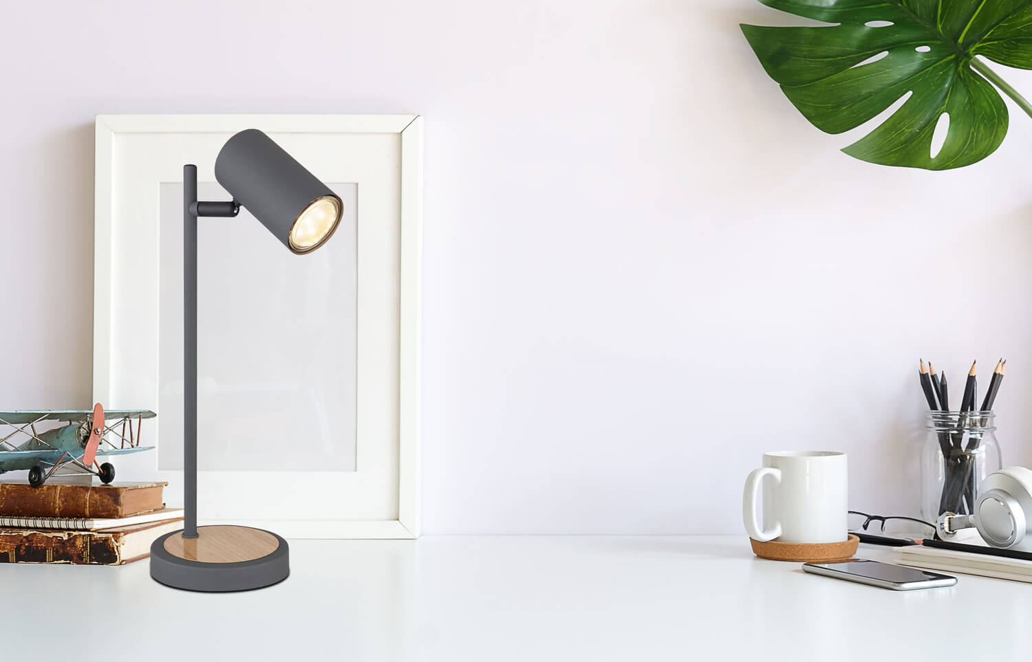 • Die Tischleuchte ist mit einer GU10 Fassung ausgestattet, somit haben Sie freie Wahl der GU10 Lampe für eine individuelle Beleuchtung.