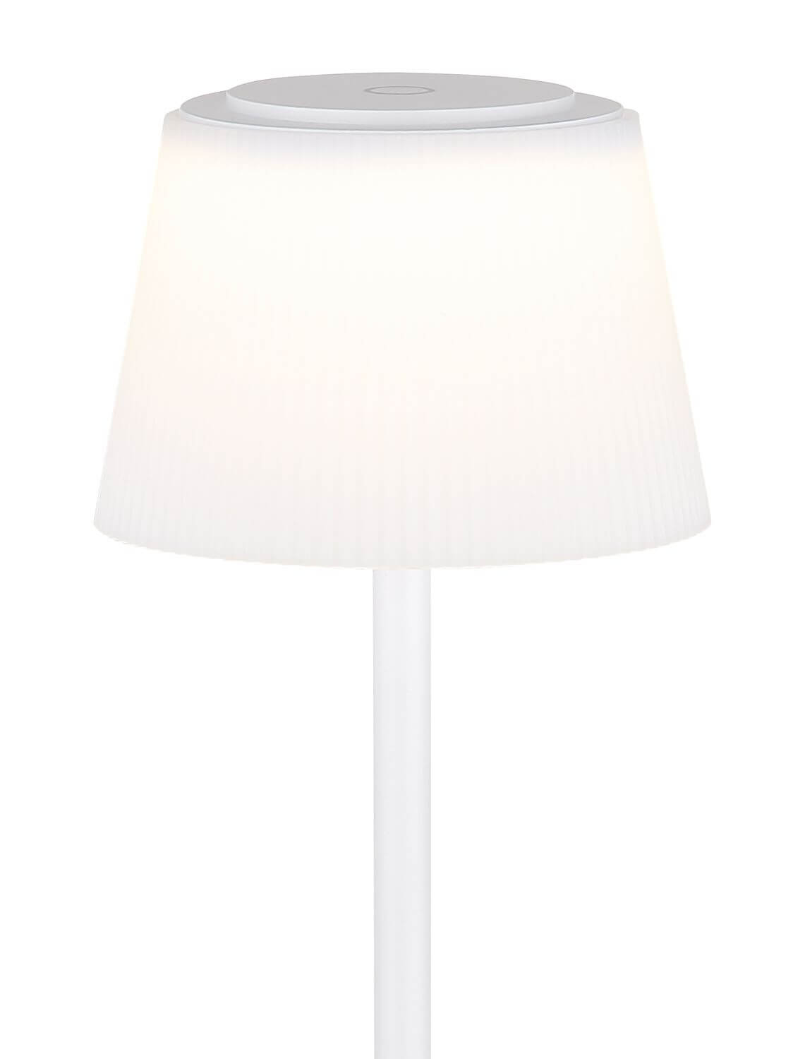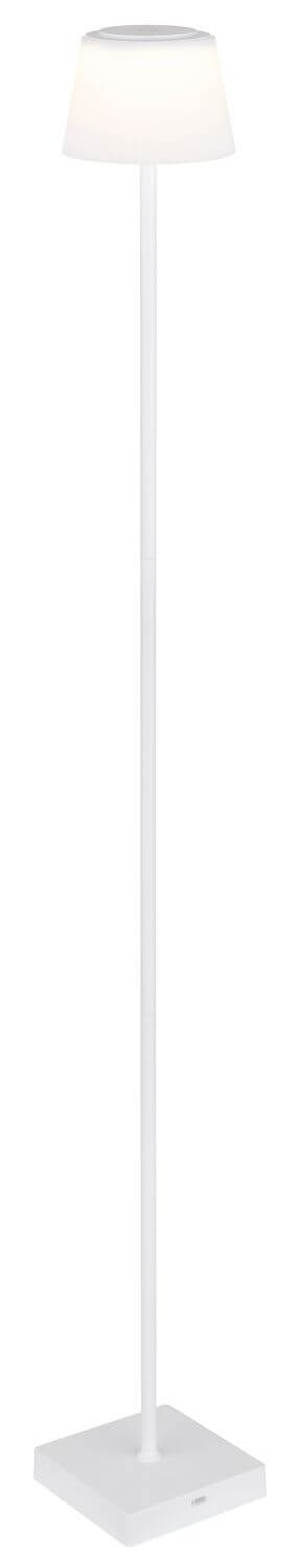 Stehleuchte Metall weiß matt, Kunststoff weiß matt, Kunststoff opal, satiniert, Kabel PVC Weiß, Touch Ein/Aus, dimmbar, stufenloser Touchdimmer, Farben fixierbar, USB Kabel inkl., Akku inkludiert CR18650 1800mAh 3.7V, IP44, Aufladezeit ca. 4 Std., Leuchtdauer ca. 6 Std., LxBxH: 140x140x1200mm, Kabellänge 1500mm, inkl. LED 4W 230V, 310lm Source, 200lm Output, CCT 3000/4000/5000K