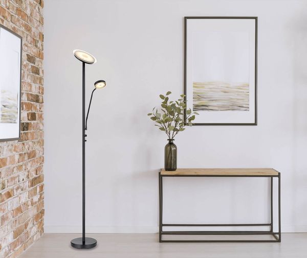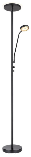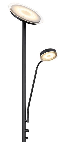 Stehleuchte Metall schwarz matt, Glas opal, satiniert, dimmbar, Dimmer, Flexo, ø: 260mm, H: 1800mm, Kabellänge 1800mm, inkl. LED 18.5W 230V, 2200lm Source, 1410lm Output, 3000K, inkl. LED 4.5W 230V, 450lm Source, 354lm Output, 3000K