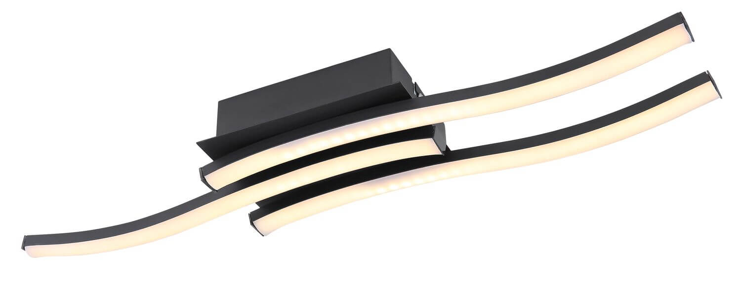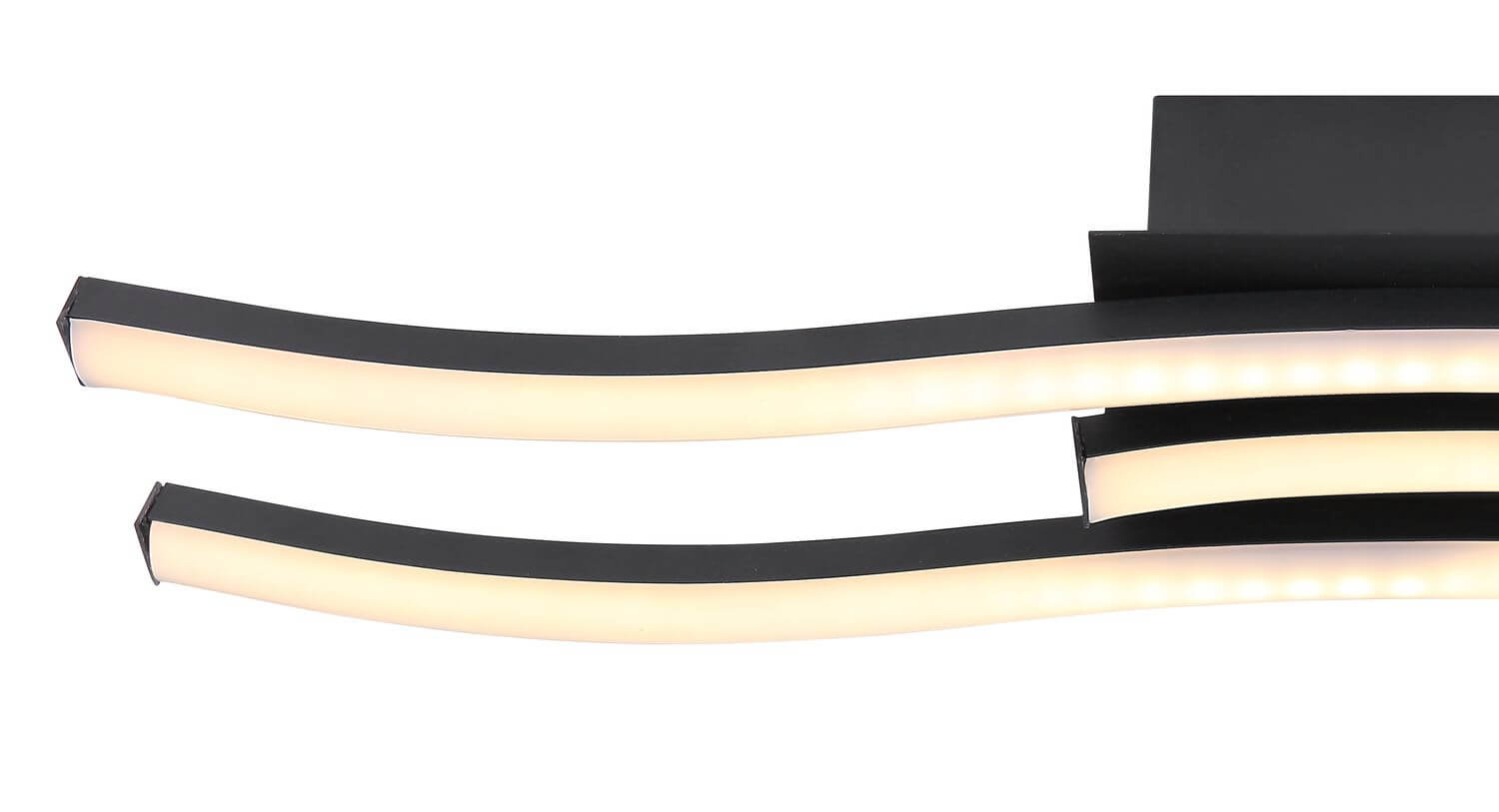 Deckenleuchte Metall schwarz matt, Kunststoff opal, weiß, LxBxH: 540x160x66mm, inkl. LED 18W 230V, 1850lm Source, 1050lm Output, 3000K
