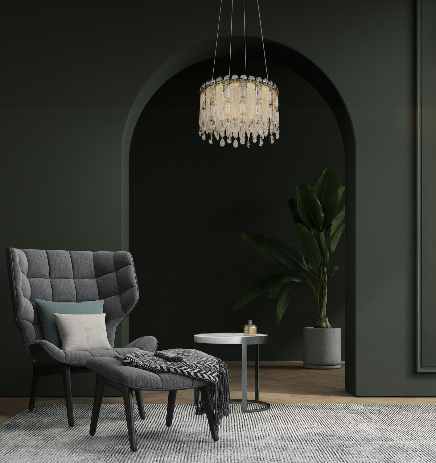 Form & Design: rund, mit Kristallbehang