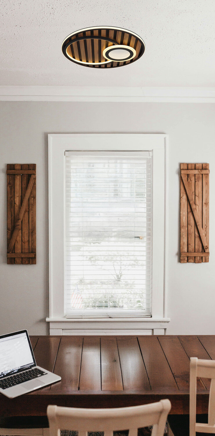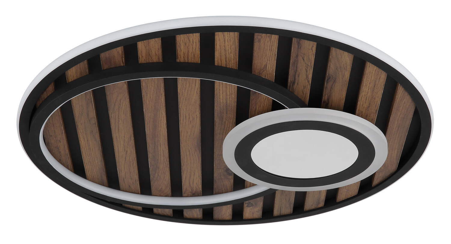 • Globo Woody LED Deckenleuchte 32W Warmweiß Schwarz Matt, Metall Memoryfunktion Ø50cm 67345D5