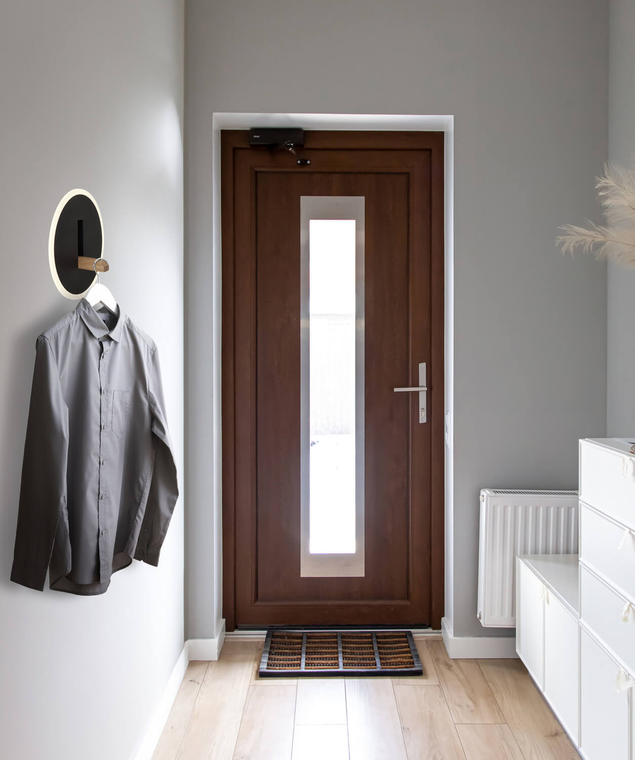 Form & Design: rund, flach, mit herunterklappbarem Kleiderhaken