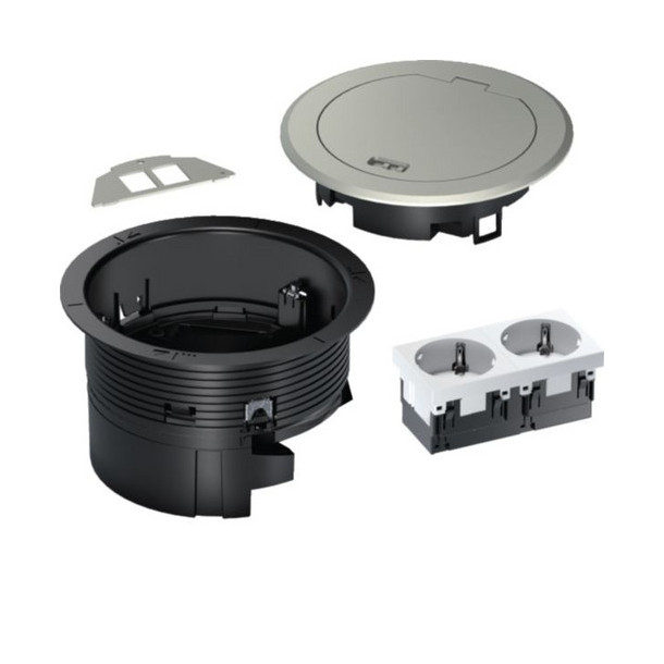 Hager BSR02D01 Installationsdose R02, 2x SCHUKO, Keystone Typ 01 2-f, Metall Klappdeckel silber
