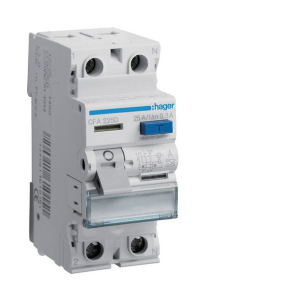 Hager CFA225D Fehlerstromschutzschalter 2 polig 6kA 25A 300mA Typ A
