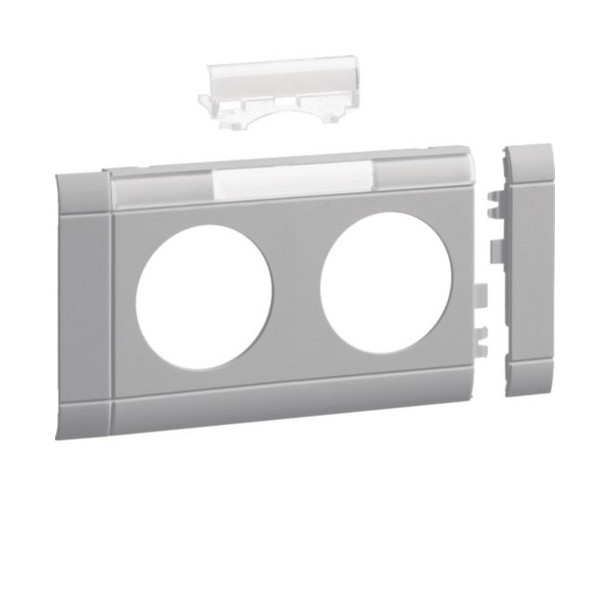 Hager GB080217035 Blende 2-fach Steckdose zu Oberteil 80mm beschriftbar anreihbar hfr lichtgrau