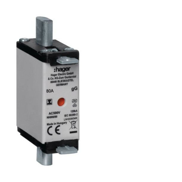 Hager LNH0080MK NH-Sicherungseinsatz NH000 gG 500V 80A Kombi-Melder mit isolierter Grifflasche
