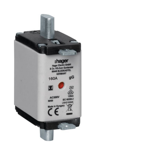 Hager LNH0160MK NH-Sicherungseinsatz NH00 gG 500V 160A Kombi-Melder mit isolierter Grifflasche