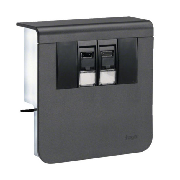 Hager SL200809079011 Geräteträger Datenanschluss 2xCat.6A zu SL 20x80mm graphitschwarz