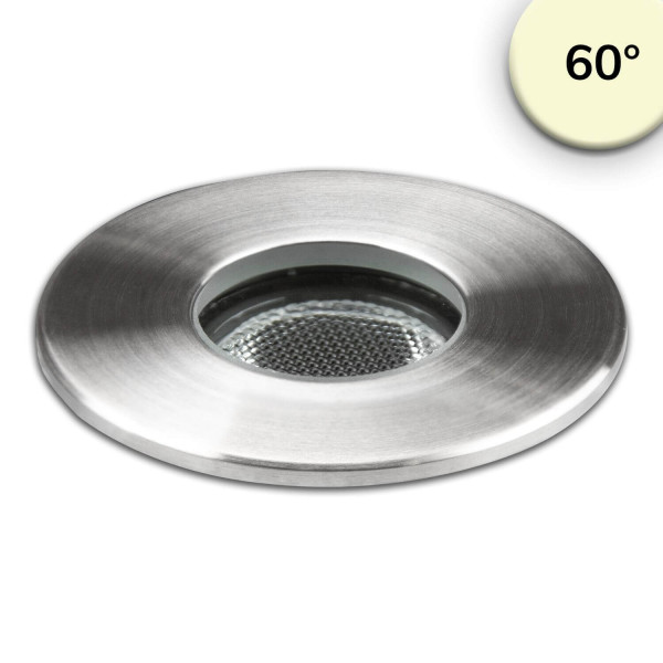 • LED Einbaustrahler, Edelstahl , 2W, 60°, IP67, 12V AC/DC, warmweiß
