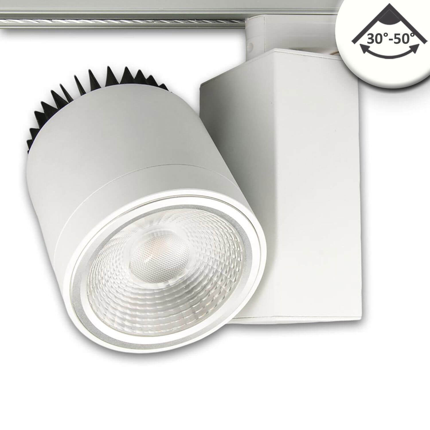 • 3-PH Schienen-Strahler fokussierbar, 30W, 30°-50°, weiß matt, 4000K, dimmbar