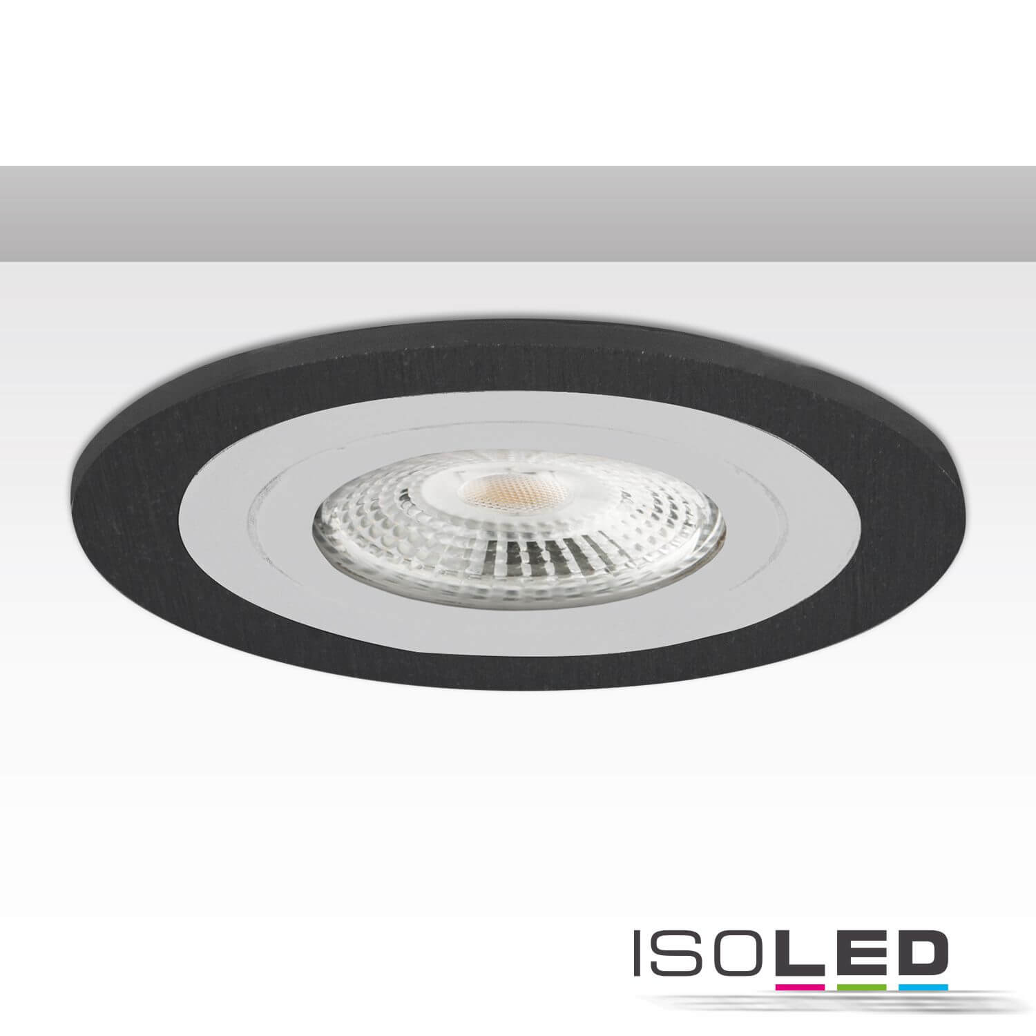 ISOLED Einbaurahmen rund, Lochausschnitt 80mm, schwarz + Alu weiß, für GU10/MR16 Spots
