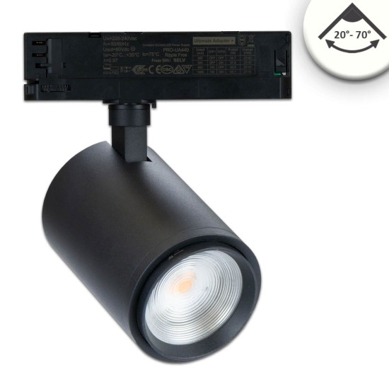 ISOLED 3-PH Schienen-Strahler fokussierbar, 42W, 20°-70°, schwarz matt, 4000K, CRI92