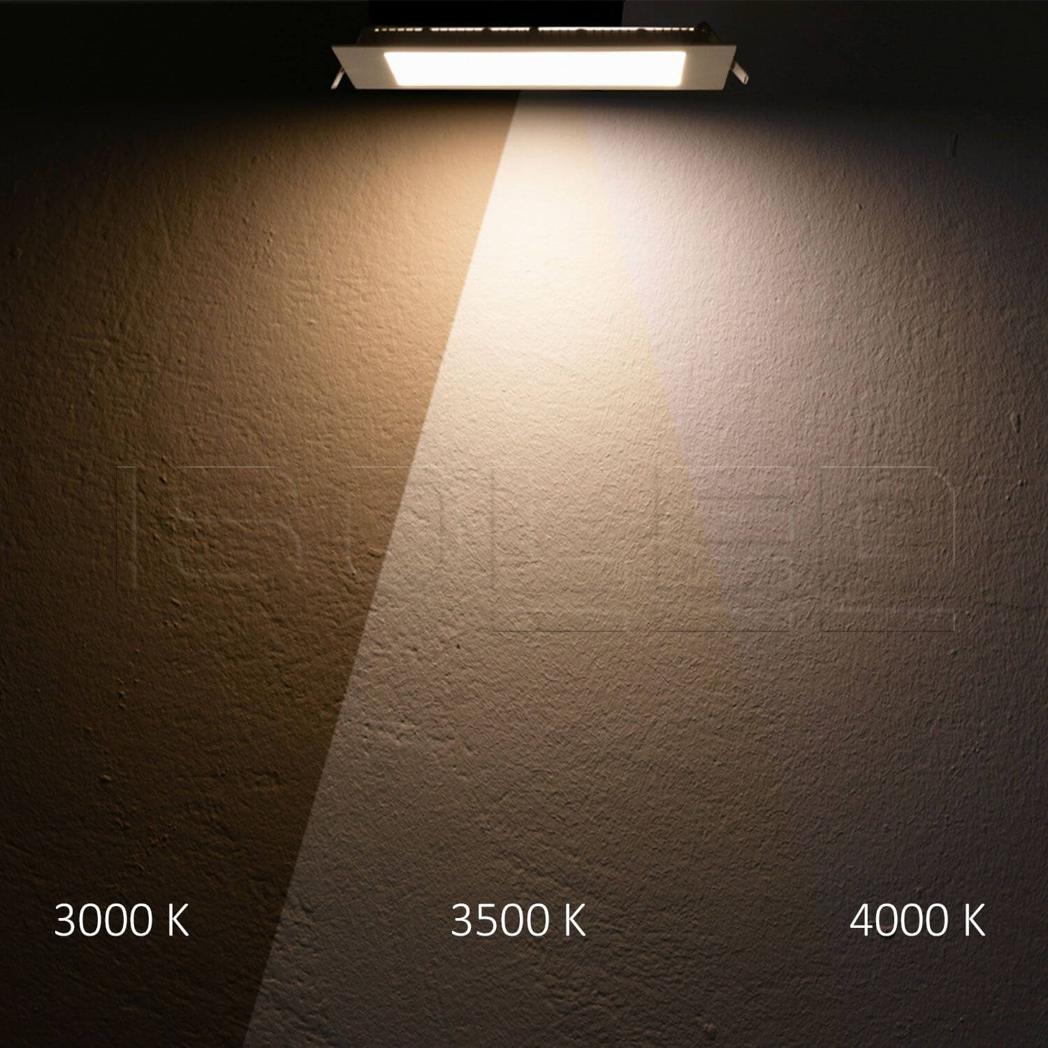 • LED Downlight, 24W, eckig ultraflach weiß, 300x300mm, Colorswitch 3000/3500/4000K, dimmbar