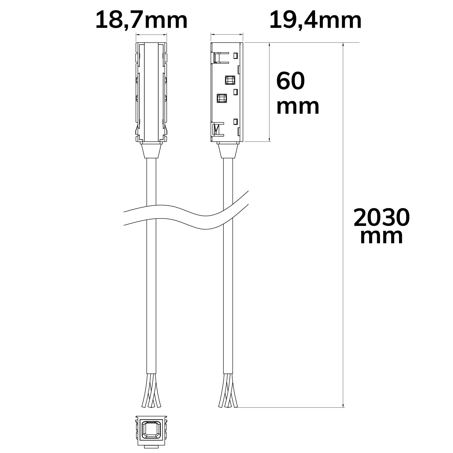 ISOLED Track48 Stromeinspeisung mit 200cm Anschlusskabel, max. 6A, 4-polig DALI