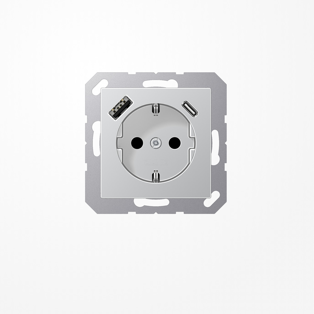 Jung A1520-15CAAL SCHUKO-Steckdose 16 A, mit USB-Ladegerät 1xTyp A + 1xTyp C, SAFETY+, Serie A, aluminium
