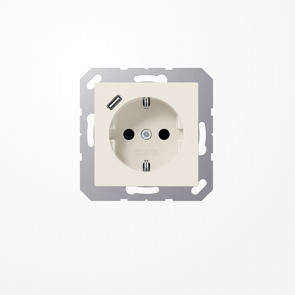 mit integriertem erhöhten Berührungsschutz (Safety Plusmit 1 USB-Buchse Typ mit Schnellladefunktion (JUNG Quick Charge®mit Federklemmen für starre und unbehandelte flexible Leiter bis 2,5mmVerbindungsklemmen nach DIN VDE 062Montage in Gerätedose mit Abmessungen nach DIN 4907Tiefe der Gerätedose (Innenmaß): min. 57 mMaterial: Thermoplast