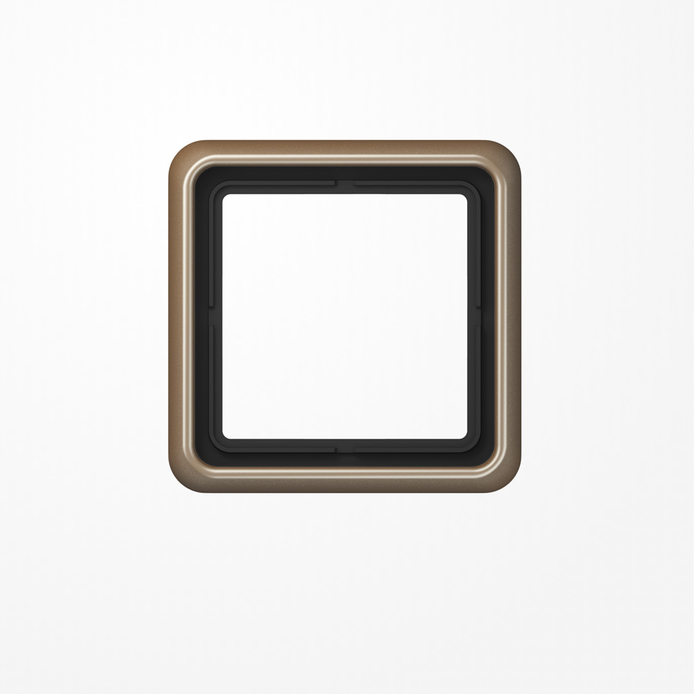 Rahmen 1fach, gold-bronzfür waagerechte und senkrechte KombinatioIP2Material: Aluminium eloxierMaße (B x H): 81 x 81 mm