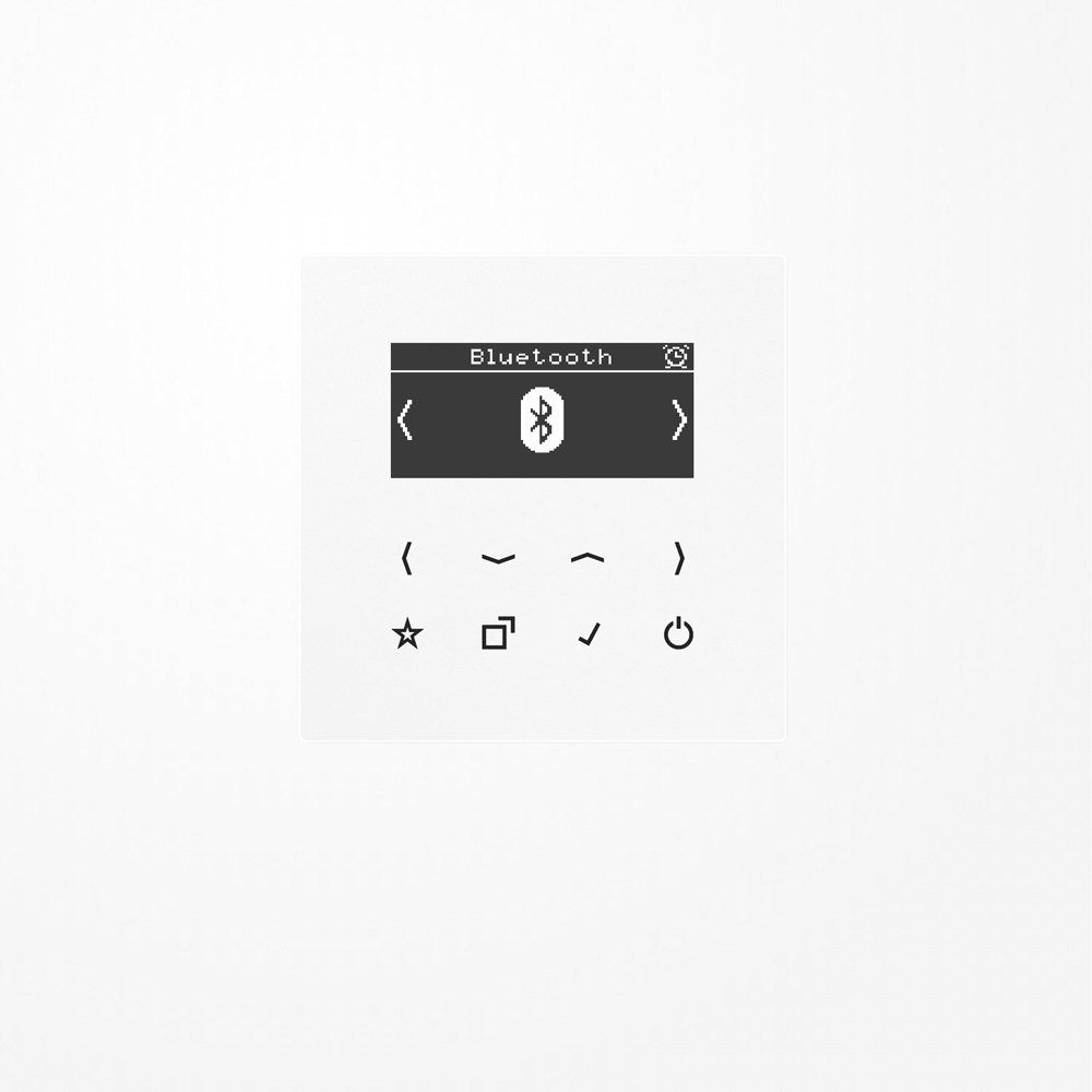 zur Montage in Einfach- oder Mehrfachrahmen und Aufputz-Kappeinklusive NetzteiBestimmungsgemäßer GebraucDAB-Empfang im Frequenzbereich 174 MHz bis 240 MHz (VHF-Band III und Kanal 13UKW-Empfang im Frequenzbereich 87,5 MHz bis 108 MHz (VHF-Band IIWiedergabe und Steuerung der Musik von mobilen Geräten über Bluetooth?Montage auf Gerätedose mit Abmessungen nach DIN 4907Tiefe der Gerätedose (Innenmaß): min. 40 mProdukteigenschafteDigitalradio mit Display und SensortasteEchtglasfronStereoempfanAnschlussklemmen für zwei LautsprecheStereo-/MonoumschaltunEinfache BedienunIntegrierte Antenne für DAB+ und UKHohe EmpfangsqualitäAutomatischer SendersuchlauSpeicherung von 8 Favoriten DAB+ und 8 Favoriten UKW (bleiben nach Spannungsausfall erhaltenSpeicherung von 8 Bluetooth®-AudioquelleBluetooth®-Gerätename änderbaEinschalten mit letztem SendeEinschalten mit letzter LautstärkEinschalten mit letzter Betriebsart (DAB+, UKW oder Bluetooth®Anzeige von Senderinformationen, Uhrzeit und aktuellen EinstellungeAktualisierung der Uhrzeit über RDS und DABDisplay-Helligkeit einstellbaNachtmoduWeckfunktioSleep-ModuEin-/Ausschalten über NebenstellLine-Out-Ausgang (AUX) zum Anschluss an externe VerstärkeOptionale externe Wurfantenne Art.-Nr.: RAD-AN?NebenstellenfunktioÜber den Nebenstelleneingang kann das Radio gemeinsam mit der Beleuchtung geschaltet werden.