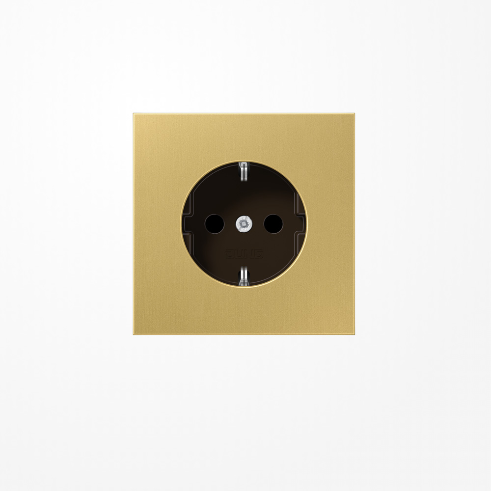 SCHUKO®-Steckdose, Messing classimit Schraubklemmen für starre und flexible Leiter bis 2,5mmVerbindungsklemmen nach DIN VDE 062Tragring, Krallen und Krallenschrauben sind über eine Erdungsschiene in die Schutzmaßnahme eingebundenMaterial: MessinMaße (B x H): 70 x 70 mm