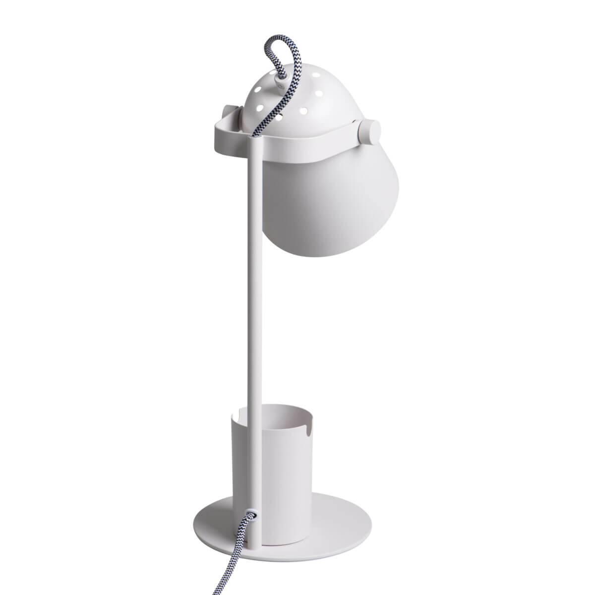 • Kanlux RAIBO ist eine modische Schreibtischlampe im Retro-Stil. Sie ist in 4 Pastellfarben sowie in den beliebten Farben Schwarz und Weiß erhältlich. Im Sockel ist ein Organizer mit einer Halterung eingebaut, in die wir unser Telefon, unsere Stifte oder unsere Brille stecken können. Der große Lampenschirm, der eine E27-Glühbirne aufnehmen kann, sorgt für eine breite Lichtverteilung. Der Retro-Einfluss ist hier offensichtlich, aber auch die Liebe zum Detail und die solide Verarbeitung (Stahl). Wir haben auch auf die Unterseite der Lampe geachtet und eine Schaumstoffunterlage hinzugefügt, damit die Lampe keine Kratzer auf dem Schreibtisch hinterlässt.