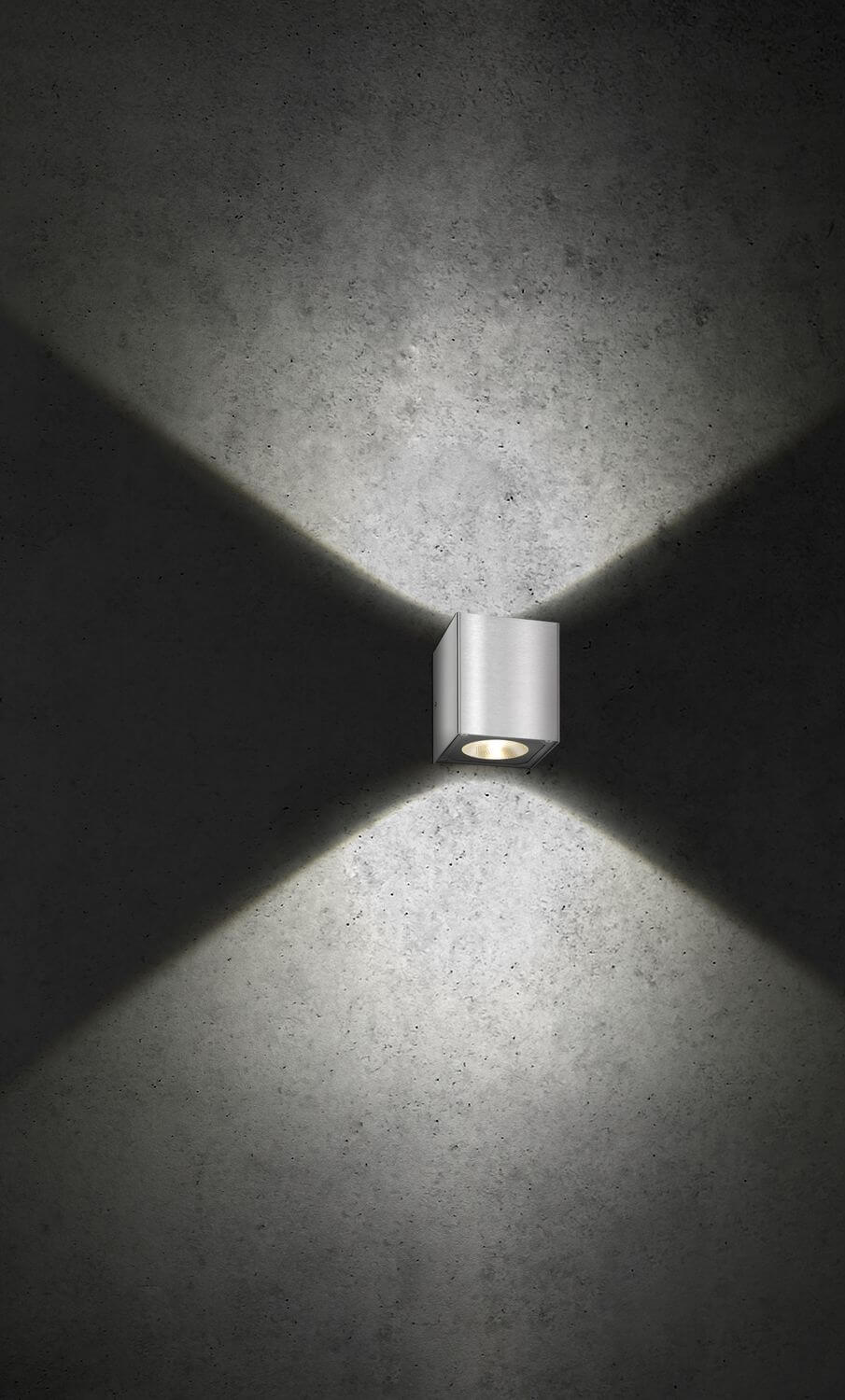 LCD Up & Down Wandleuchte LED 2fach mit Reflektor Edelstahl 2x7W Warmweiss IP54 11x11x11cm 5026