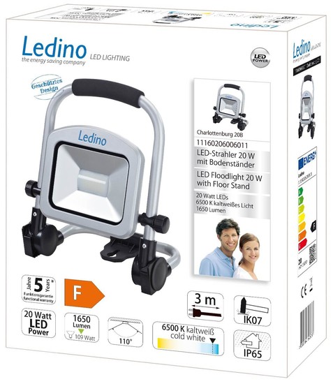 • Ledino LED-Standstrahler 20W Fluter Charlottenburg 20B, 20W, 6500K, silber mit Tragegriff tageslichtweiss