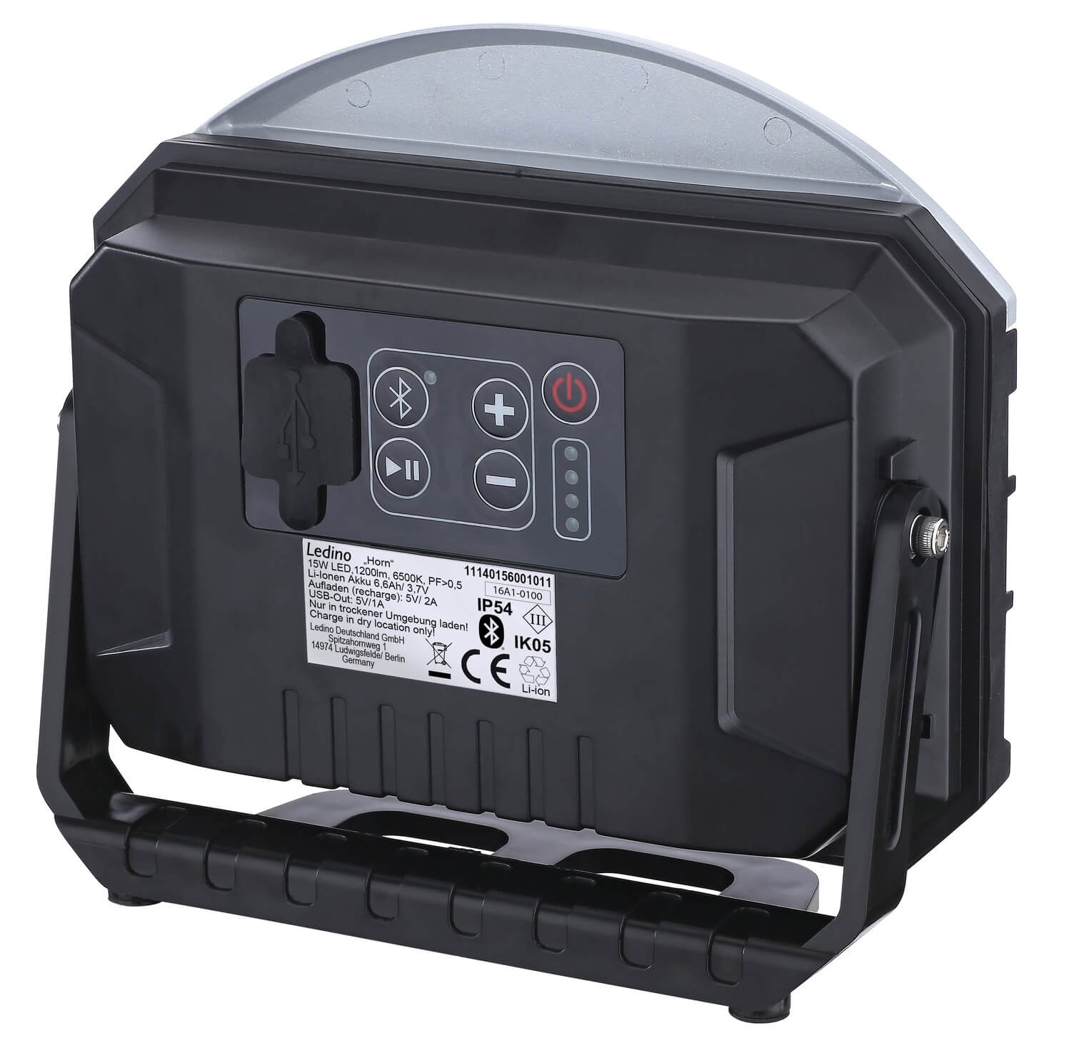 Ledino 15 W LED-Akkustrahler Horn mit Bluetooth Lautsprechern, silber