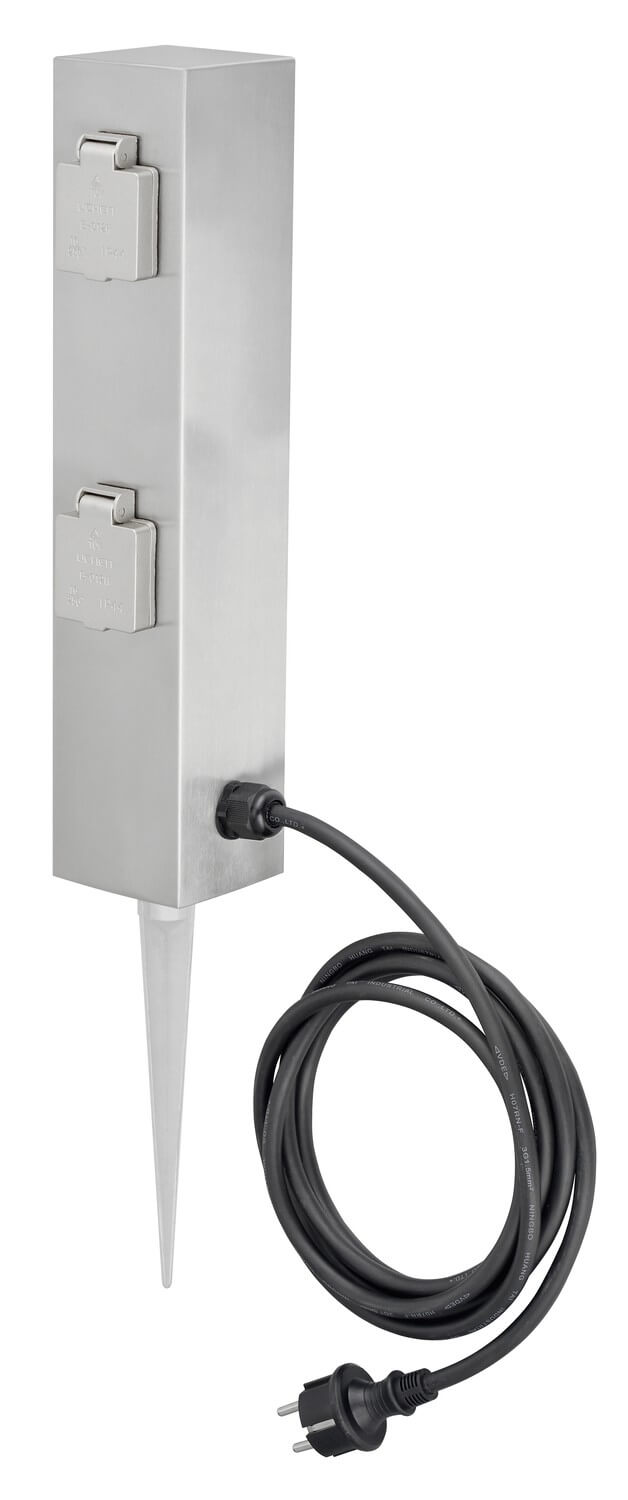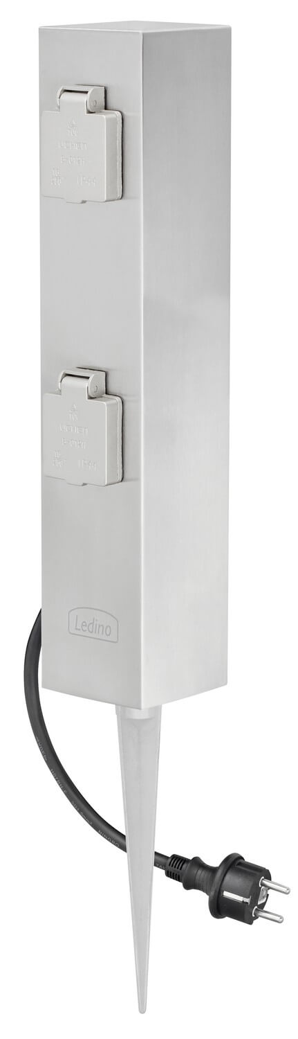 Ledino Steckdosensäule 4er mit Erdspieß Connect S4, Edelstahl Außen