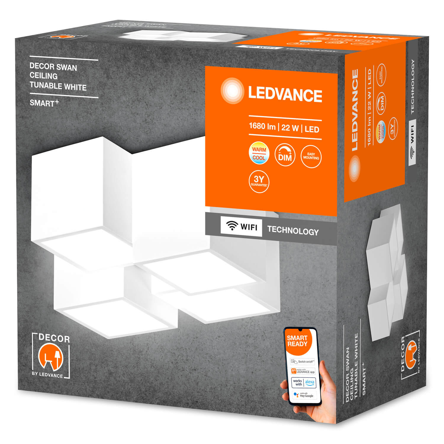 • LEDVANCE SMART+ WiFi DECOR Deckenleuchte, weiß, 22W, 1680lm, regulierbares Weißlicht, dimmbar, 3000-6500K, multi-kubisches Design, steuerbar per App, kompatibel mit Amazon, Google und Co.
