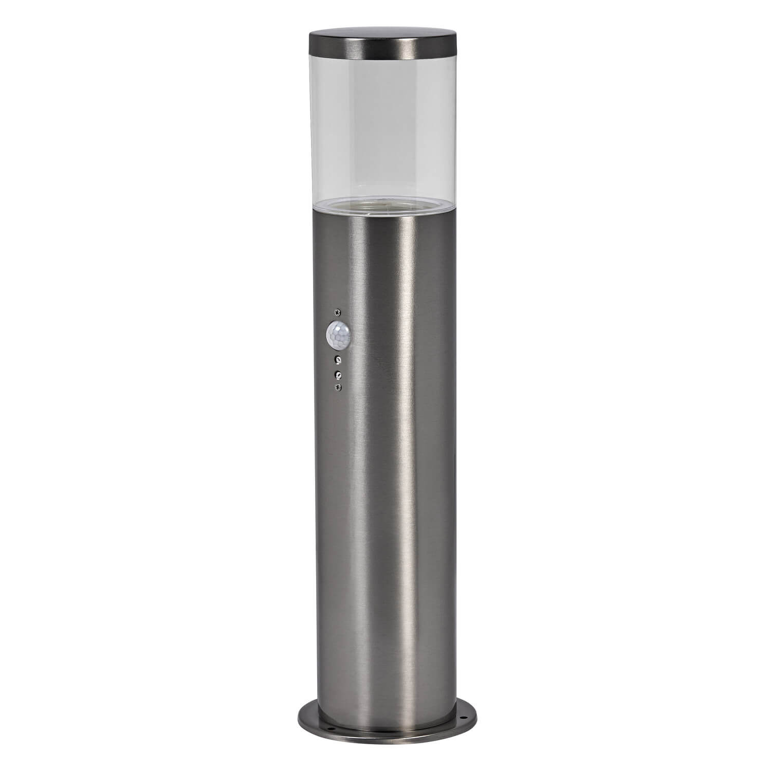 Poller- und Wandleuchten mit Edelstahlgehäuse, E27-Sockel und optionalem Sensor.