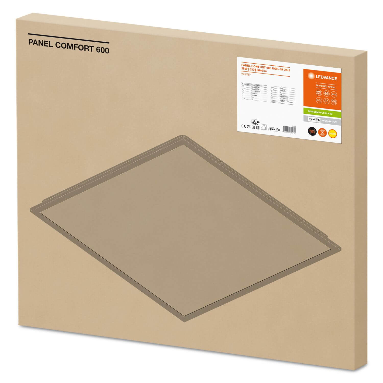 • LEDVANCE PANEL COMFORT 600 UGR<19 DALI 28W 830 VIVARES 3640lm 3000K warmweiss IP40/IP20 dimmbar