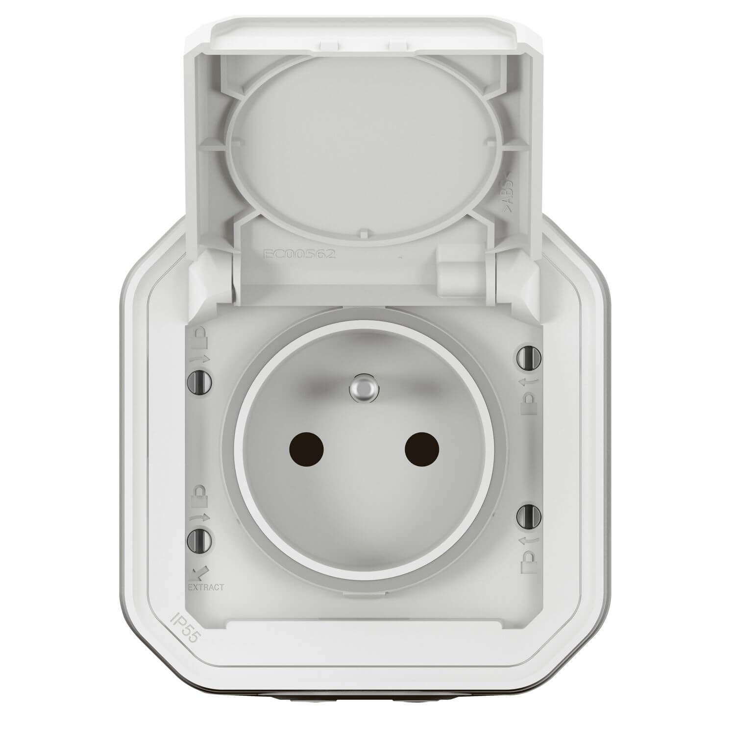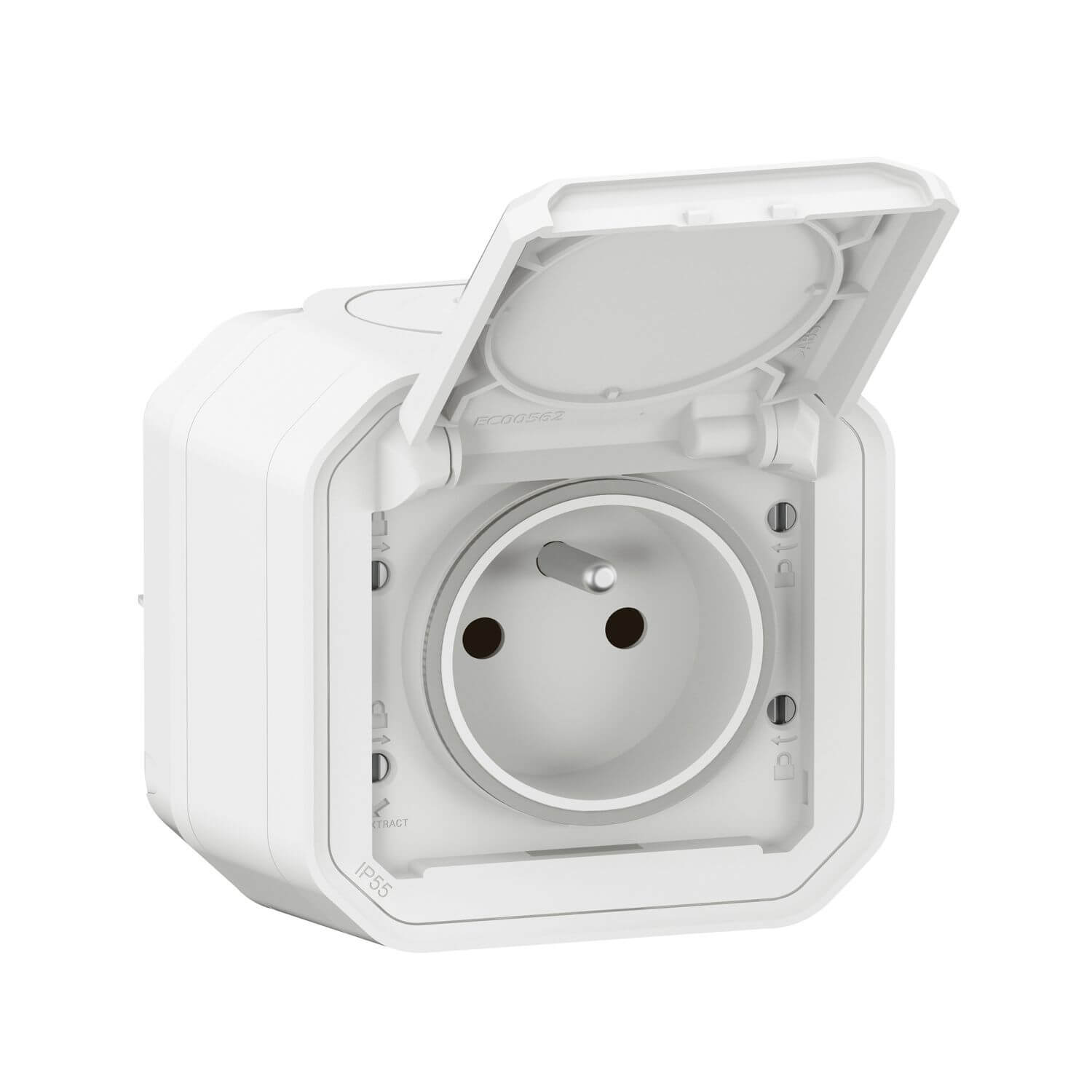 • PLEXO New FRAP Steckdose F/B Std Steckklemmen EB, IP55, IK 08, Ultraweiß