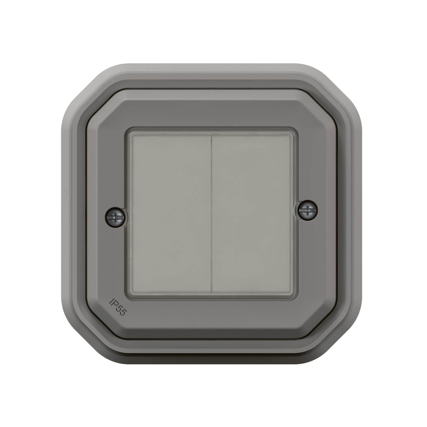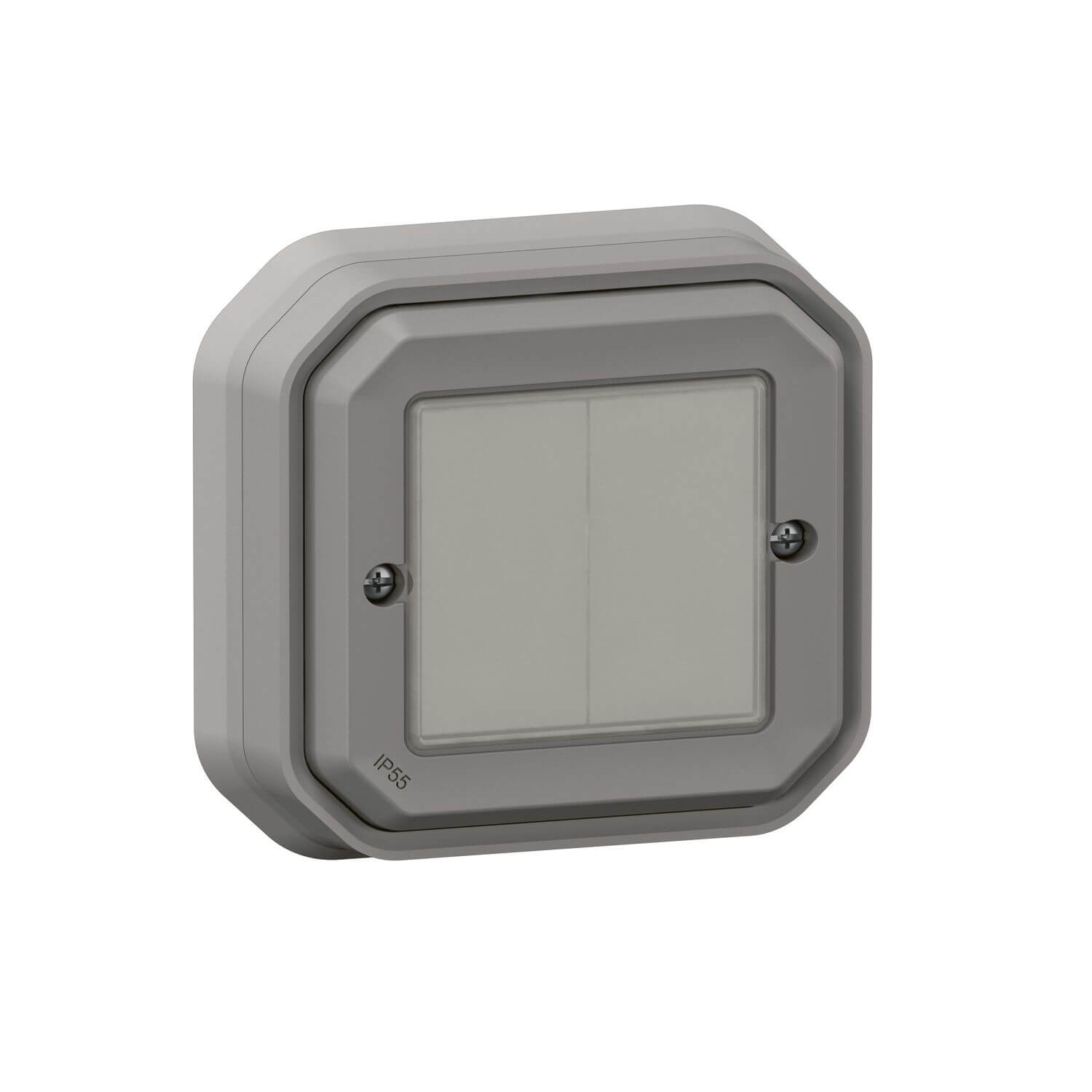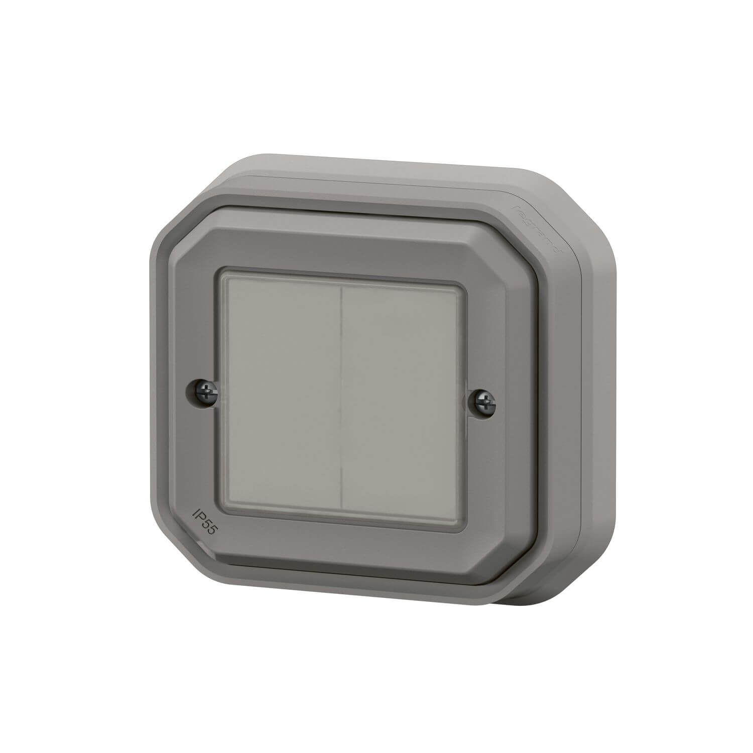 • Legrand Plexo New Feuchtraum-Connected-Smart-Home-Doppelschalter, Wandsender, Aufputz-Schalter, An-Aus, batteryless technology, Home+Control-App, IP55 - IK07 wasser- und stoßfest, grau, 069819L