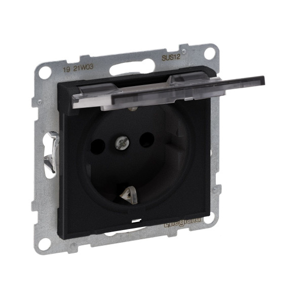 • Legrand SEANO Schutzkontakt-Steckdose mit erhöhtem Berührungsschutz und Klappdeckel IP21, Steckklemmen, 16 A, 250 V, Farbe: Schwarz lackiert, 765323
