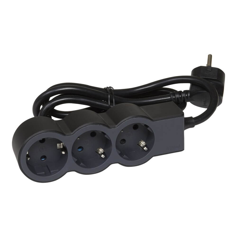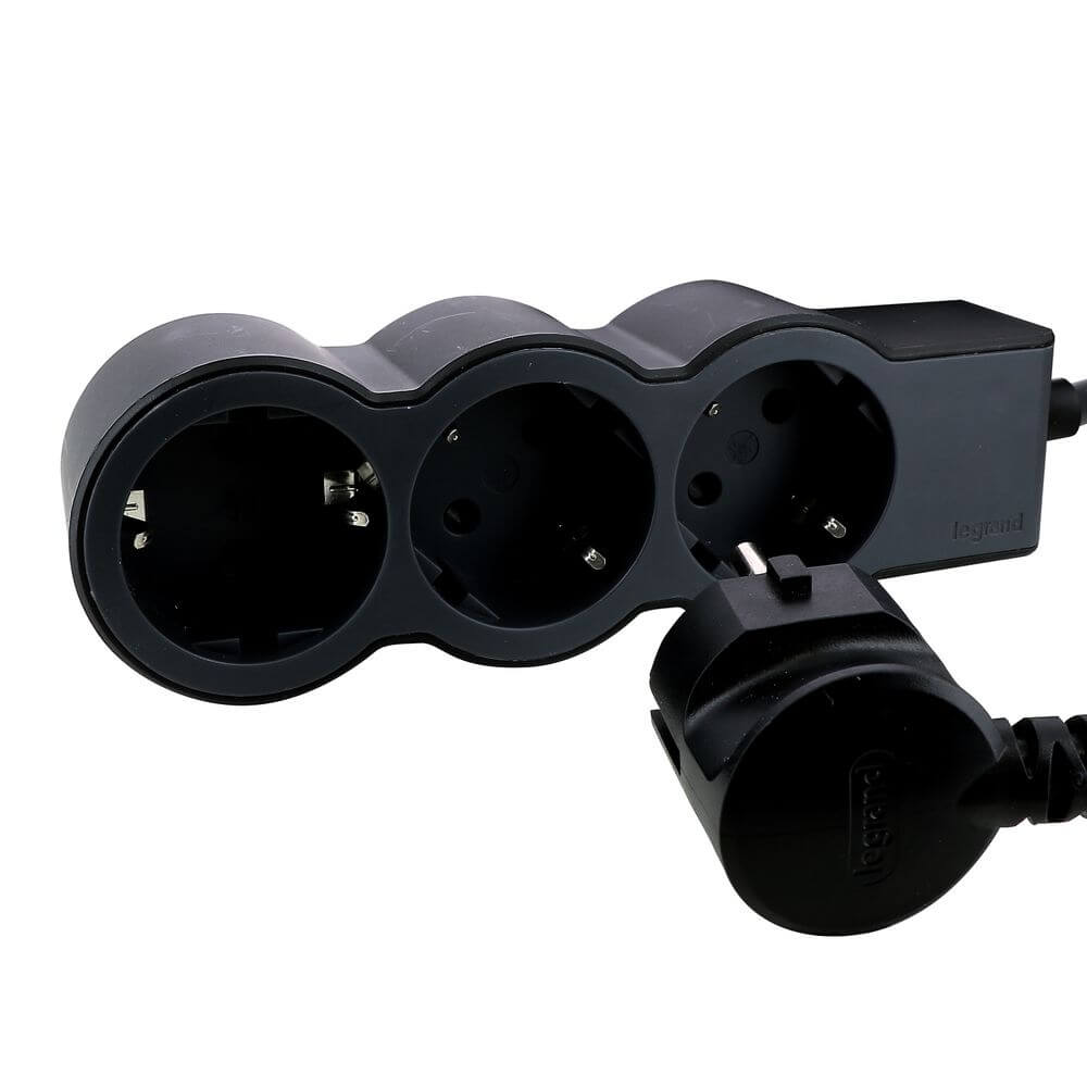 Mobile Preview: Legrand Flache Steckdosenleiste 3x Steckdose, 1,5 Meter Kabel Schwarz 694550