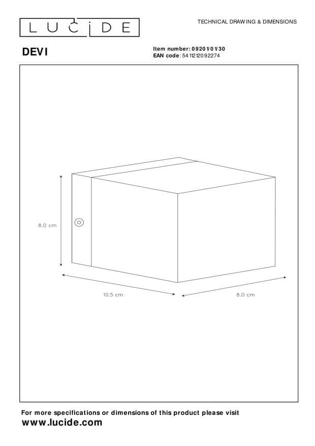 • Die Wandlampe Lucide Devi ist eine wunderschön verarbeitete Aluminiumarmatur. Diese von vielen Architekten verwendeten Wandlampe ist am schönsten an einer schönen Putzmauer oder an einer robüst gemauerten Wand. Diese Wandlampe hat nämlich ein hervorragendes sanduhrförmiges Lichtbündel. Mit einer Abmessung der Hinterplatte von 10,5 cm x 8 cm ist die Devi einfach über den Unterputz-Abzweigdose zu platzieren. Die Devi ist mit einer G9 Hochvoltfassung versehen, wird jedoch ohne Lichtquelle geliefert. Sie haben die Wahl aus einem traditionellen G9 Halogenspot (max 42W) oder einer energieeffizienten (nicht) abblendbaren G9 LED-Lichtquelle. LED oder traditionell Halogen, da diese Devi keinen Transformator hat, ist die Armatur besonders einfach abzubleden (mit einem basic Ein- oder Aufbaudimmer - nicht eingeschlossen). Die Devi ist in weißer-, schwarz mit innen in mattem Gold und Aluminiumfarbe erhältlich.