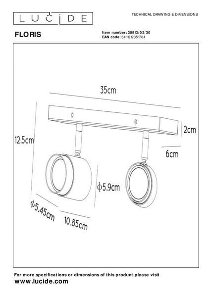 • Floris bietet eine moderne und warme Interpretation von Deckenstrahlern. Diese Version verfügt über 2 Lichtpunkte und ist aus hochwertigem Aluminium gefertigt. Die zylindrische Form mit einem Durchmesser von 10 Zentimetern wurde mit einem Treppeneffekt versehen, der zum modernen Look von Floris beiträgt. Sie können den Lichtpunkt ganz einfach drehen und neigen. Damit können Sie Licht genau an den Stellen erzeugen, an denen Sie es brauchen. Schließen Sie diesen Deckenstrahler an einen Dimmer an, um die gewünschte Atmosphäre in jedem Raum einer klassischen oder modernen Einrichtung zu schaffen.