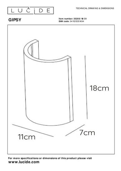 • Lucide GIPSY Wandleuchte G9 Weiß