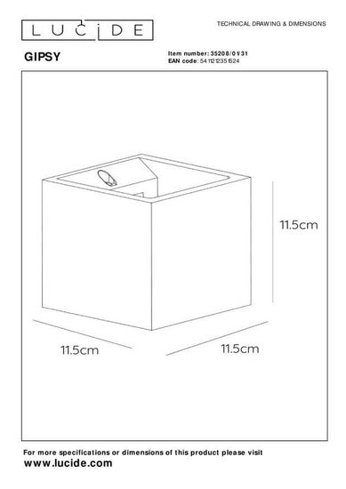 • Eine phantasievolle Interpretation kombiniert mit warmer Beleuchtung. Wandleuchte Gipsy passt perfekt an die Wand und bringt die Sonne nach drinnen. Dank des Schirms aus Gips bleibt das Licht gut an seinem Platz und gibt es keinen Verlust wertvoller Hitze. Das quadratische Modell von 11,5 x 11,5 Zentimetern lässt Sie wegträumen. Gipsy eignet sich auch für LED-Leuchten und einen Dimmer. Ein einfaches Modell wird so plötzlich zum Stimmungsmacher im Haus.