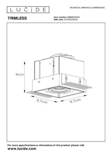 • Der Lucide TRIMLESS Einbaustrahler, eine funktionale Lösung mit Charakter. Dieser Einbauspot ist ideal für Räume, in denen Ästhetik eine Rolle spielt. Dieser Einbauspot ist ohne sichtbare Umrandung oder Rahmen in der Decke wunderschön verborgen und verleiht ihm ein industrielles Aussehen. Der Einbaustrahler Lucide TRIMLESS hat einen Stuckrahmen. Der Spot selbst kann so platziert und auf die richtige Dicke der Stuckschicht eingestellt werden, um eine immer passende und dichte Installation zu gewährleisten. Der Spot ist mit einem Kardanring ausgestattet, mit dem Sie das Licht um 360 Grad lenken und neigen können.