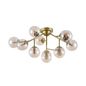 • Die großflächigen skulpturalen Kompositionen aus zahlreichen geblasenen Glaskugeln prägen das einzigartige Erscheinungsbild der Leuchten der Serie. Die polierten Metallzweige sind mit getönten Plafonds versehen, die das Licht der Lampen sanft streuen und dimmen. Die Serie ist in drei Farben erhältlich: Gold, Chrom und Messing. Die Pendelleuchten sind über die Kabellänge höhenverstellbar. Das Sortiment besteht aus Decken-, Pendel- und Wandleuchten.