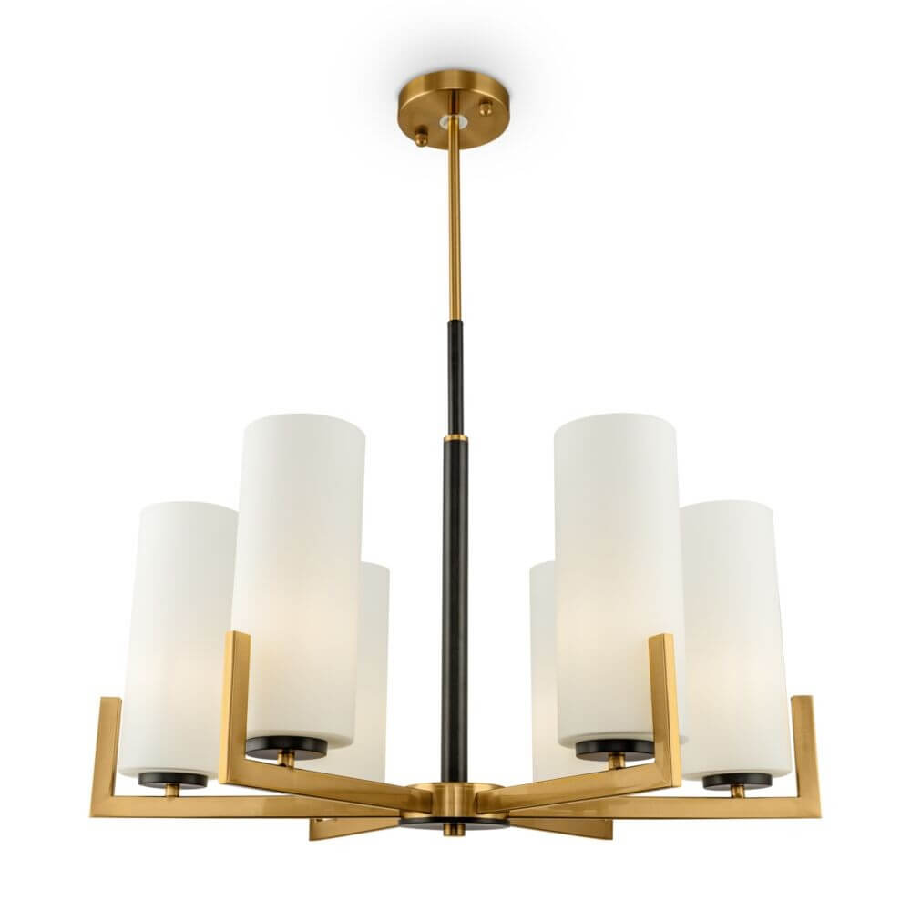 • Die elegante Kombination von geometrischen Formen und klassischen Farben ist ein unverwechselbares Merkmal der Fortano-Kronleuchter. Die optische Leichtigkeit der Modelle wird durch die zylindrischen Glasplatten mit weißem Farbton erreicht. Sie geben einen weichen, leicht diffusen Lichtstrom ab und sorgen für eine gleichmäßige Lichtverteilung. Der schwarz lackierte Mittelzapfen und die rechteckigen Hörner lassen die messingfarbenen Beschläge größer erscheinen und betonen die Schwerelosigkeit der Leuchte. Die 6-, 8- und 10-köpfigen Kronleuchter sorgen für eine helle Allgemeinbeleuchtung, während ein dezenter Wandleuchter aus der gleichen Serie ein zusätzliches Lichtelement darstellt.