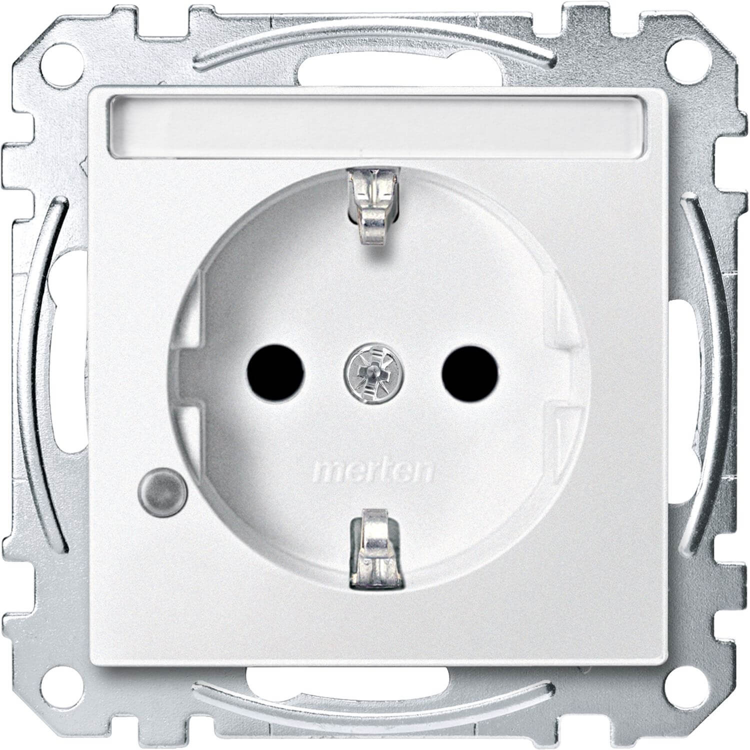 Merten MEG2303-0419 Schutzkontakt-Steckdose mit Kontrolllicht und Schriftfeld, Berührungsschutz, Steckklemmen, polarweiß, System M