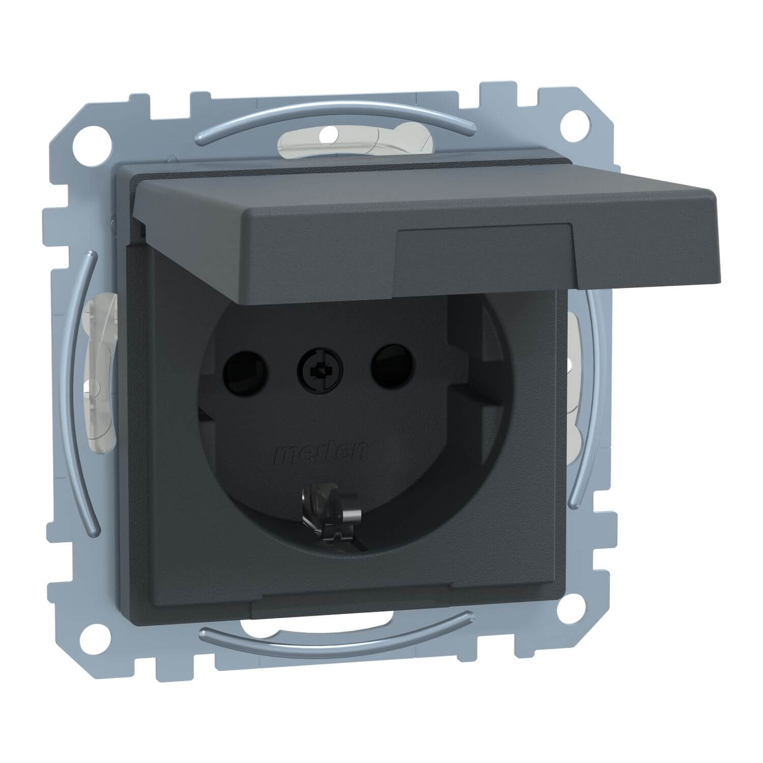 Merten MEG2310-0414 Schutzkontakt-Steckdose mit Klappdeckel, Berührungsschutz, Steckklemmen, anthrazit, System M