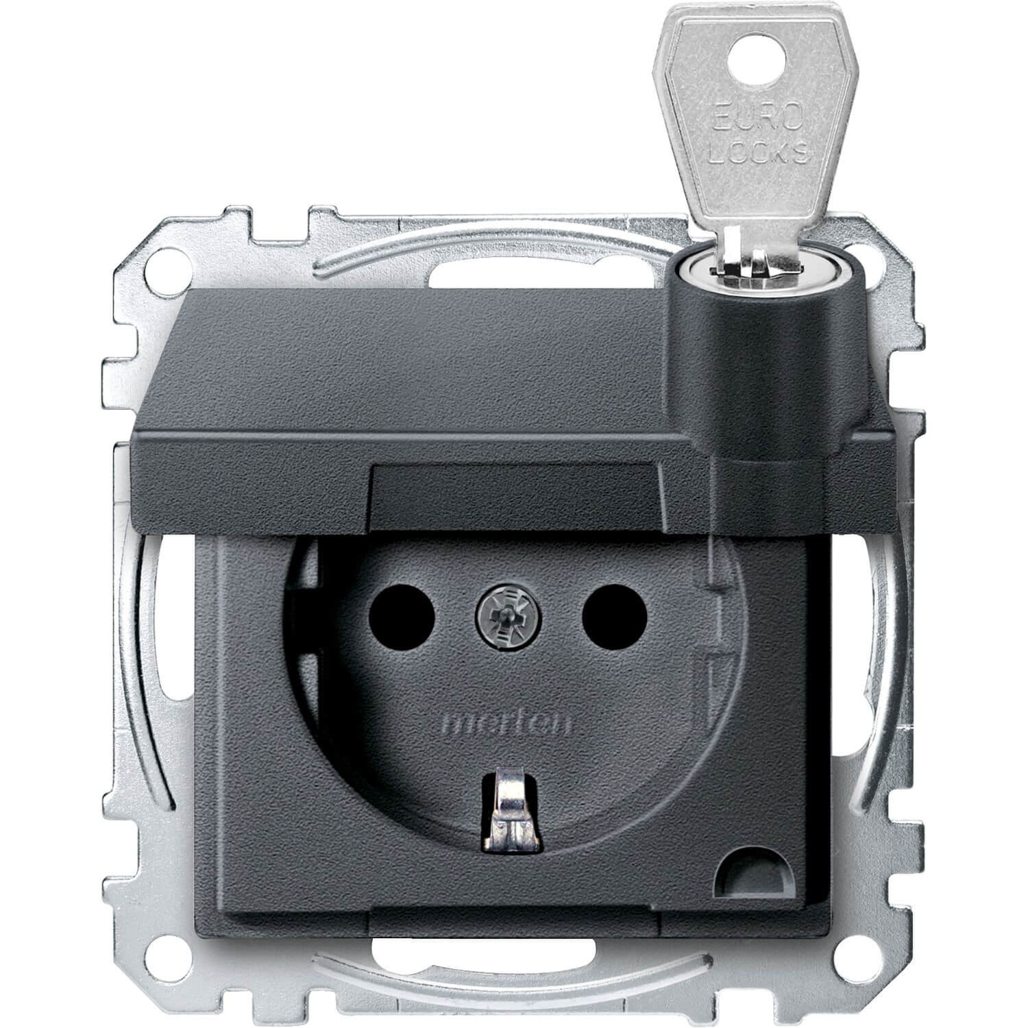 Merten MEG2315-0414 Schutzkontakt-Steckdose, Klappdeckel, abschließbar, verschiedene Schließungen, BRS, Steckklemmen, anthrazit,System M