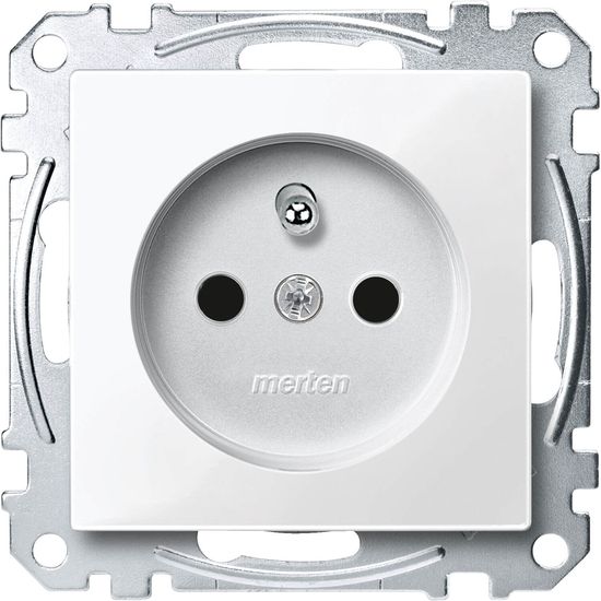 Merten MEG2500-0319 Steckdose mit Schutzkontaktstift, Berührungsschutz, Steckklemmen, polarweiß glänzend, System M