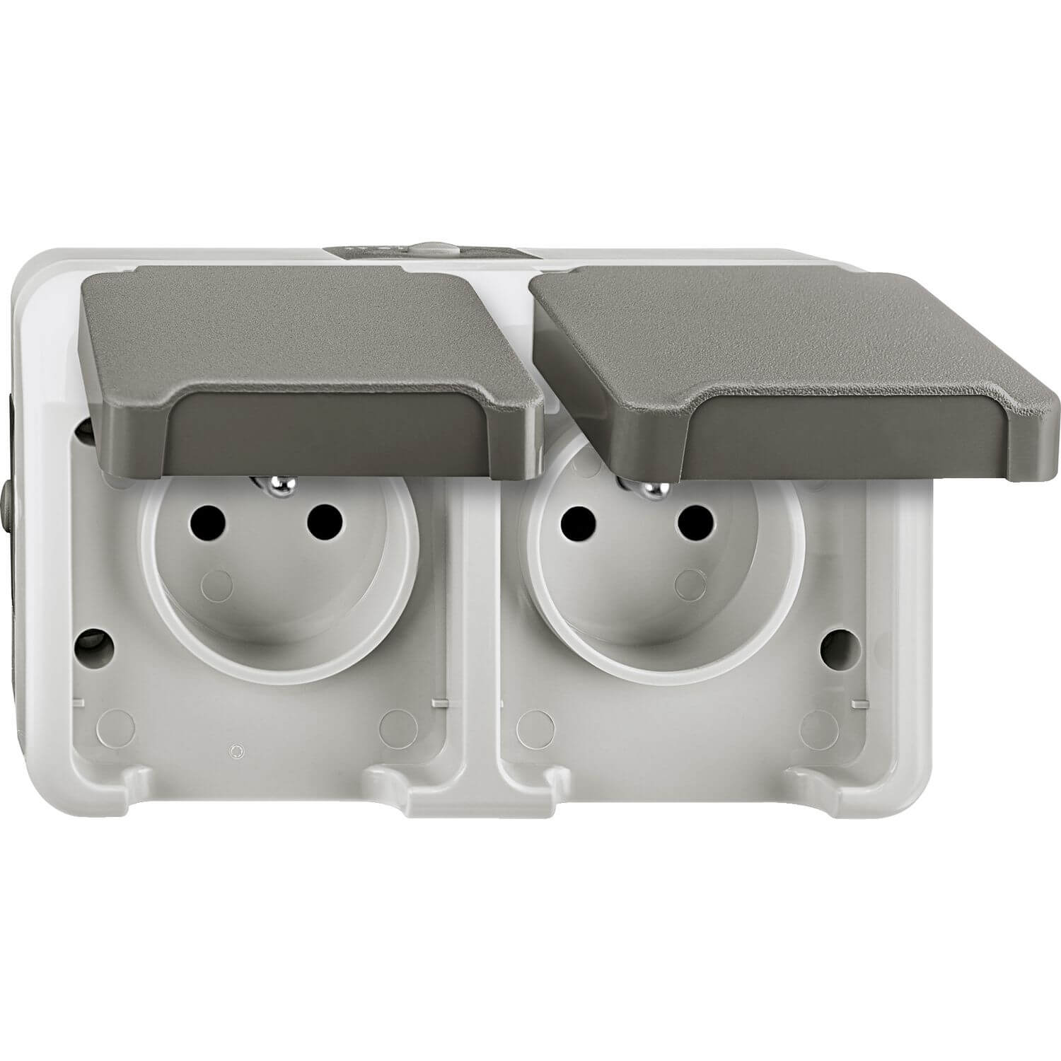 Merten MEG2520-8029 Doppelsteckdose mit Schutzkontaktstift und Berührungsschutz, lichtgrau, AQUASTAR