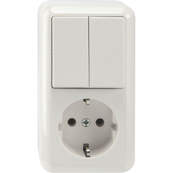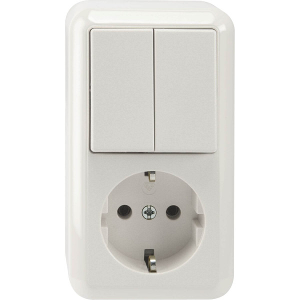 Merten MEG3498-8719 Kombination Schutzkontakt-Steckdose/ Serienschalter, 1-polig, polarweiß, AUFPUTZ