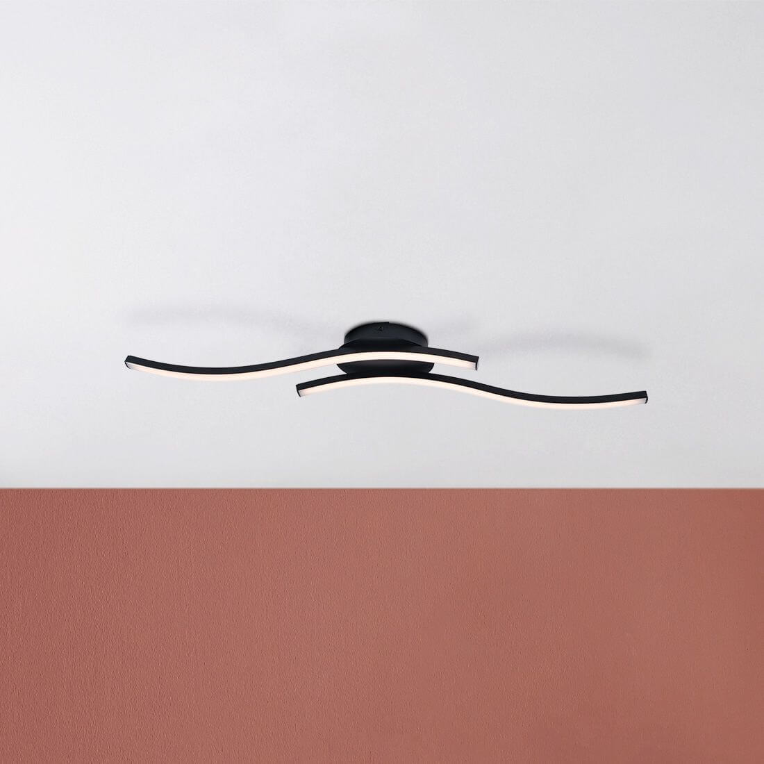 • Geschmackvolles, zeitloses Design und modernste Lichttechnik, verbunden mit einer flexiblen Verwendbarkeit. Das sind die Hauptmerkmale der LED Wand-/Deckenleuchte Onda. Die beiden wellenförmigen, parallel und leicht versetzt angeordneten Lichtleisten sind ein echter Blickfang. Wie die Bezeichnung es schon ausdrückt, können Sie diese Leuchte entweder an der Wand oder an der Decke montieren, was Ihnen bei der Raumgestaltung viele Möglichkeiten bietet. Das schwarz lackierte Gestell besteht aus Aluminium und Eisen. Die Abschirmung besteht aus Kunststoff. Die bereits installierten LED-Lampen verströmen ein angenehm warmweißes Licht. Die Gesamtlänge der Wand-/Deckenleuchte beträgt 66 Zentimeter, wodurch sie auch in kleineren Räumen Platz findet, ohne aufdringlich zu wirken.